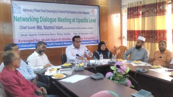 মিরপুর প্রতিনিধি ॥ কুষ্টিয়ায় মিরপুরে তামাক চাষ নিরুৎসাহিতকরণ ও নিরাপদ খাদ্য উৎপাদনে উপজেলা পর্যায়ে নেটওয়ার্ক মিটিং অনুষ্ঠিত হয়েছে। মুক্তি নারী ও শিশু উন্নয়ন সংস্থার উদ্যোগে এবং এশিয়ান প্যাসিফিক ফোরাম অন