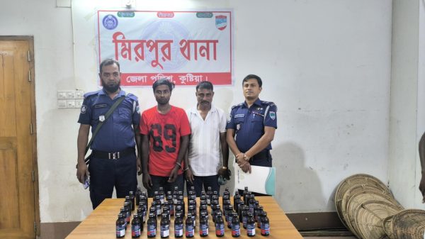 মিরপুর প্রতিনিধি ॥ কুষ্টিয়ায় মিরপুরে পুলিশের চেকপোষ্টে ৬২ বোতল ফেনসিডিল ও প্রাইভেট কার সহ দুইজন মাদক ব্যবসায়ীকে আটক করেছে পুলিশ। সোমবার (৩০ সেপ্টেম্বর) বিকেলে কুষ্টিয়ার মিরপুরে পুলিশের চেকপোষ্টে ৬২ বোতল
