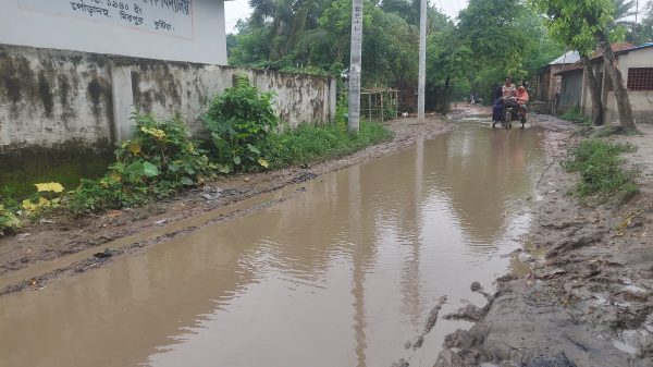 মিরপুর প্রতিনিধি \ কুষ্টিয়ার মিরপুর উপজেলার তেঘরিয়ায় রা¯Íায় জলাবদ্ধতা সৃষ্টিতে চরম ভোগান্তিতে পড়েছে প্রাথমিক শিক্ষার্থীসহ পথচারীরা। তেঘরিয়া সরকারি প্রাথমিক বিদ্যালয়ের শিশু শিক্ষার্থীসহ আশপাশের ৭-৮টি গ্রামের কয়েক হাজার মানুষের চলাচলের একমাত্র