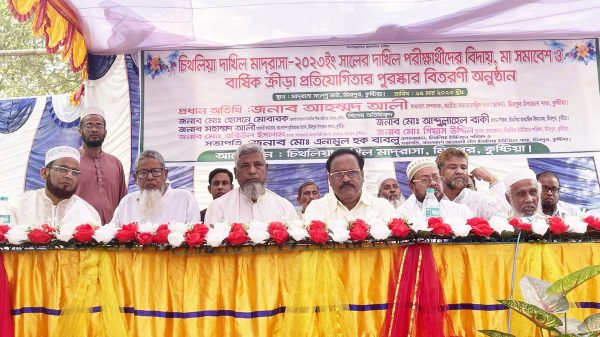 মিরপুর প্রতিনিধি ॥ কুষ্টিয়ার মিরপুরের চিথলিয়া দাখিল মাদরাসায় বার্ষিক ক্রীড়া প্রতিযোগিতার পুরস্কার বিতরণ, মা সমাবেশ ও দাখিল পরীক্ষার্থীদের বিদায় অনুষ্ঠান সম্পন্ন হয়েছে। বুধবার সকালে মাদরাসা প্রাঙ্গণে এ অনুষ্ঠান সম্পন্ন হয়।