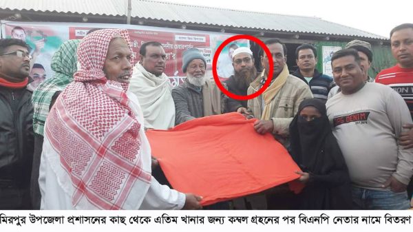 মিরপুর প্রতিনিধি ॥ কুষ্টিয়ার মিরপুরে সরকারী কম্বল বিএনপি নেতার নামে বিতরণ করা হয়েছে। বৃহস্পতিবার বিকেলে ছাতিয়ান ইউনিয়নে সরকারী শীতবস্ত্র কম্বল বিএনপি নেতার নামে বিতরণের এমন চাঞ্চল্যকর ঘটনা ঘটে। জানাযায়, মিরপুর