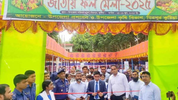 মিরপুর প্রতিনিধি ॥ “দেশি ফল বেশি খাই, আসুন ফলের গাছ লাগাই” এই স্লোগানকে সামনে রেখে কুষ্টিয়া জেলার মিরপুরে ৩দিন ব্যাপী জাতীয় ফল মেলার উদ্বোধন করা হয়েছে। মঙ্গলবার সকাল সাড়ে ১০টায়