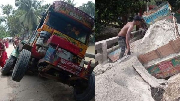 কাগজ প্রতিবেদক ॥ পানি উন্নয়ন বোর্ডের ঝুঁকিপূর্ণ ব্রিজ দিয়ে বালু বোঝায় একটি ট্রলি নিয়ে পার হতে গিয়ে ব্রিজ ভেঙে আটকে গেল ট্রলি।রোববার সকালে এ ঘটনা ঘটে। তবে এতে কোনো হতাহতের