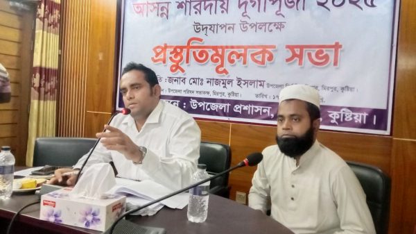 মিরপুর প্রতিনিধি ॥ কুষ্টিয়ার মিরপুর উপজেলা প্রশাসনের আয়োজনে আসন্ন শারদীয় দুর্গাপূজা উপলক্ষে প্রস্তুতিমূলক সভা অনুষ্ঠিত হয়েছে। বুধবার (১৭ সেপ্টেম্বর) বিকেলে মিরপুর উপজেলা পরিষদ অডিটোরিয়ামে এ সভা অনুষ্ঠিত হয়। মিরপুর উপজেলা