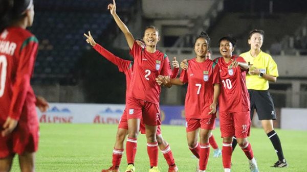 ক্রীড়া প্রতিবেদক ॥ বড় জয় দিয়ে নারী এশিয়ান কাপ ফুটবলের বাছাই পর্ব শেষ করেছে বাংলাদেশ দল। ‘সি’ গ্রুপে নিজেদের তৃতীয় ও শেষ ম্যাচে আজ বাংলাদেশ ৭-০ গোলে হারিয়েছে তুর্কমেনিস্তানকে। ম্যাচের