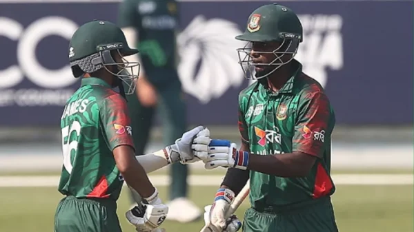 ক্রীড়া প্রতিবেদক ॥ আজিজুল হাকিমের বলে আউট হলেন চেতন শর্মা। বাউন্ডারি লাইনে কালাম সিদ্দিকী ক্যাচ নিতেই আনন্দে ভাসল বাংলাদেশ। মাঠে ক্রিকেটারদের কৃতজ্ঞতার সিজদাহ। উড়ল বাংলাদেশের পতাকা। ভারতকে ৫৯ রানে হারিয়ে