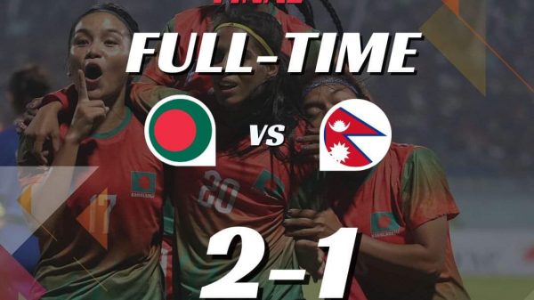 টানা দ্বিতীয়বার সাফ চ্যাম্পিয়ন বাংলাদেশ ক্রীড়া প্রতিবেদক ॥ ২০২২ সালে এই নেপালকে ৩-১ গোলে হারিয়ে প্রথমবারের মতো নারী সাফ চ্যাম্পিয়নশিপের চ্যাম্পিয়ন হয়েছিল বাংলাদেশ। এবার ছিল বাংলাদেশের মেয়েদের শিরোপা দলে রাখার