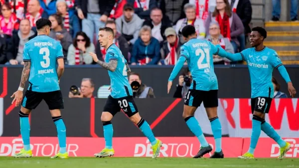 ঢাকা অফিস ।। কোলনকে ২-০ গোলে পরাজিত করে বুন্দেসলিগায় বর্তমান চ্যাম্পিয়ন বায়ার্ন মিউনিখের থেকে ১০ পয়েন্টের সুস্পষ্ট ব্যবধানে এগিয়ে টেবিলের শীর্ষস্থান শক্তিশালী করেছে বায়ার লেভারকুসেন। শুক্রবার ফ্রেইবার্গের সাথে ২-২ গোলে