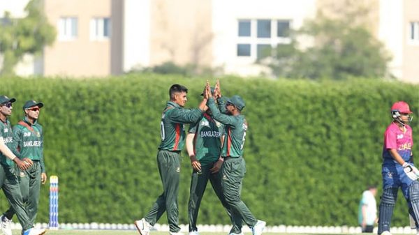 ঢাকা অফিস ।। জয় দিয়ে অনূর্ধ্ব-১৯ এশিয়া কাপে যাত্রা শুরু করলো বাংলাদেশ দল। ‘বি’ গ্রুপে আজ নিজেদের প্রথম ম্যাচে বাংলাদেশ ৬১ রানে হারিয়েছে সংযুক্ত আরব আমিরাতকে। দুবাইয়ের আইসিসি একাডেমি মাঠে