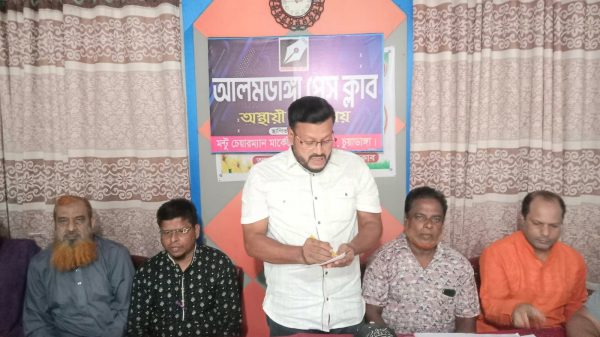 আলমডাঙ্গা ব্যুরো ॥ আলমডাঙ্গা প্রেসক্লাবের নবনির্বাচিত সদস্যদের সাথে প্রথম মাসিক সভা গতকাল শনিবার বেলা ১১টায় প্রেসক্লাব মিলনায়তনে অনুষ্ঠিত হয়েছে। সভায় সভাপতিত্ব করেন প্রেসক্লাবের নবনির্বাচিত সভাপতি মোঃ বশিরুল আলম এবং পরিচালনা