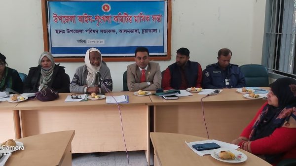 আলমডাঙ্গা অফিস ॥ আলমডাঙ্গা উপজেলা প্রশাসনের উদ্যোগে আইন শৃঙ্খলা কমিটির সভা অনুষ্টিত হয়েছে। গতকাল সকাল সাড়ে ১০ টার দিকে উপজেলা পরিষদ হলরুমে এই সভা অনুষ্টিত হয়।উপজেলা নির্বাহী অফিসার রনি আলম