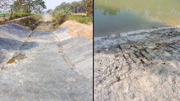 আলমডাঙ্গা অফিস : আলমডাঙ্গার জিকে ক্যানেলের উইং ওয়াল সদ্য নির্মাণের সাত দিনের দিনের মাথায় ভেঙে যাচ্ছে বলে অভিযোগ উঠেছে। স্থানীয়রা সংশ্লিষ্ট ঠিকাদারি প্রতিষ্ঠানের বিরুদ্ধে নিম্নমানের সামগ্রী ব্যবহারের অভিযোগ তুলেছেন। জানা