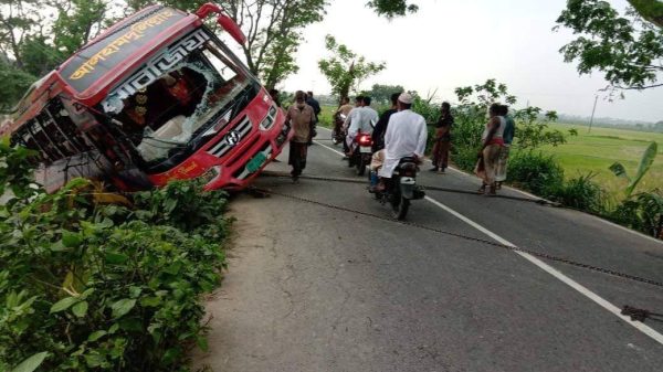 আলমডাঙ্গা প্রতিনিধি ॥ আলমডাঙ্গা- কুষ্টিয়া হাইওয়ে সড়কে দ্রতগামী বাস নিয়ন্ত্রণ হারিয়ে ১০ জন আহত হয়েছে।স্থানীয় সুত্রে জানাজায় বাসটি পাটিকা বাড়ী তাহের মোড়ে জিকে ক্যানেলে উল্টে পড়ে। গতকাল সকাল ৭ টায়