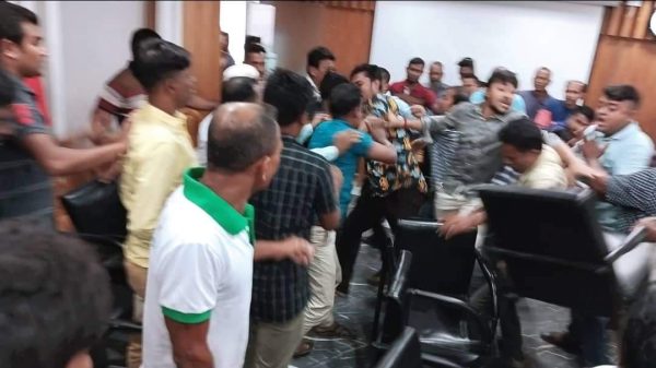 নড়াইল প্রতিনিধি ॥ নড়াইলে জেলা পরিষদ নির্বাচনের প্রতীক বরাদ্দের সময় দুই গ্রুপের মধ্যে মারামারি ও চেয়ার ভাঙচুরের ঘটনা ঘটেছে। সোমবার সাড়ে ১২টার দিকে নড়াইল জেলা প্রশাসকের সম্মেলন কক্ষে এ ঘটনা