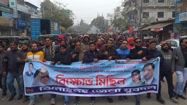 ঝিনাইদহ প্রতিনিধি ॥ বিএনপির ভারপ্রাপ্ত চেয়ারম্যান তারেক রহমান ও তার স্ত্রী জোবায়দা রহমান’র বিরুদ্ধে গ্রেফতারি পরোয়ানা জারি সম্পদ জব্দের আদেশের প্রতিবাদে ঝিনাইদহে বিক্ষোভ মিছিল ও সমাবেশ করেছে যুবদল। দলটির জেলা