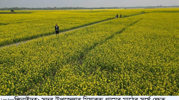 ঝিনাইদহ প্রতিনিধি ॥ ঝিনাইদহ সদর উপজেলার মিয়াকুন্ডু গ্রামের দিগন্ত বিস্তৃত মাঠ। যতদূর চোখ যায় শুধু হলুদ আর হলুদ। মাঠ জুড়ে যেন বিছানো রয়েছে হলুদ গালিচা। রঙের পাশাপাশি সরিষার হলুদ ফুলের