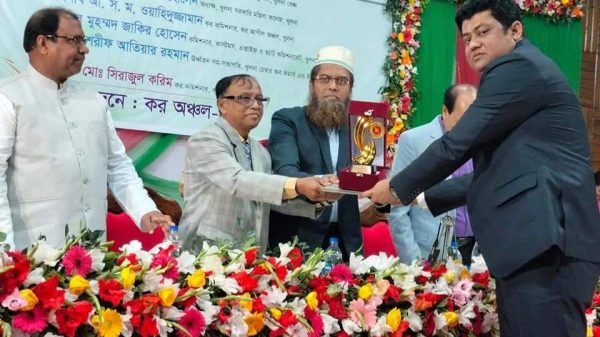 ঝিনাইদহ প্রতিনিধি ॥ “আয়করের উন্নয়ন, রূপকরের বাস্তবায়ন”এ শ্লোগানে ঝিনাইদহ জেলার সেরা করদাতা ঠিকাদারি প্রতিষ্ঠানের সম্মাননা পুরস্কার পেলেন জেলা শহরের ঠিকাদার কাজী মাহবুবুর রহমান রুনু। দুপুরে খুলনা সরকারি মহিলা কলেজ অডিটোরিয়ামে