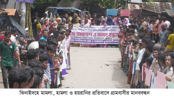 ঝিনাইদহ প্রতিনিধি ॥ ঝিনাইদহে দুই পরিবারের হয়রানি, মামলা ও হামলার প্রতিবাদে মানববন্ধন কর্মসূচী পালিত হয়েছে। শুক্রবার সকালে সদর উপজেলার মধুপুর চৌরাস্তা বাজারে উত্তর কাস্টসাগরা গ্রামের মানুষ এ কর্মসূচী পালন করে।
