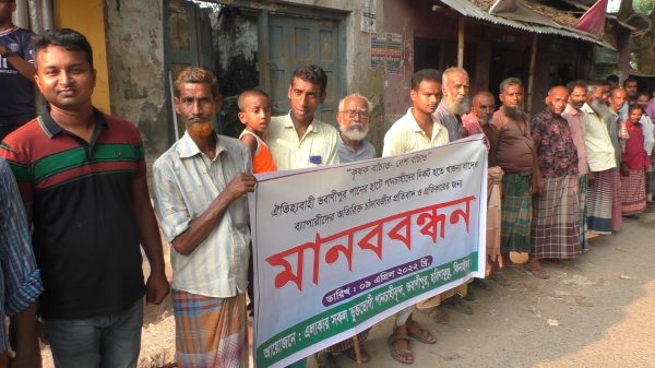 ঝিনাইদহ প্রতিনিধি ॥ ঝিনাইদহের হরিণাকুন্ডুতে পানচাষীদের কাছ থেকে চাঁদাবাজীর প্রতিবাদ ও তা বন্ধের দাবীতে মানববন্ধন কর্মসূচী পালিত হয়েছে। হরিণাকুন্ডু উপজেলার ভবানীপুর বাজারে এ কর্মসূচীর আয়োজন করে স্থানীয়রা। এতে ব্যানার ফেস্টুন