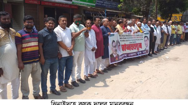 ঝিনাইদহ প্রতিনিধি ॥ শেরপুরের নলিতাবাড়ী ও রাজশাহীর গোদাগাড়ীতে ৩ কৃষকের আত্মহত্যার ঘটনার সুষ্ঠু তদন্ত ও বিচারের দাবীতে ঝিনাইদহে মানববন্ধন কর্মসূচী পালিত হয়েছে। বৃহস্পতিবার সকালে শহরের এইচ এস এস সড়কের জেলা