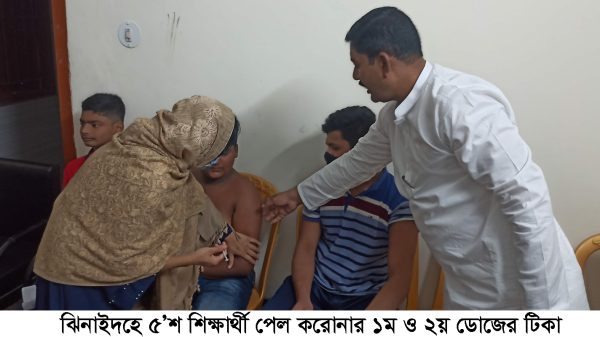 ঝিনাইদহ প্রতিনিধি ॥ ঝিনাইদহে ১২ বছর থেকে স্কুল ও কলেজ পর্যায়ের ৫’শ শিক্ষার্থীকে করোনার ১ম ও ২য় ডোজের টিকা দেওয়া হয়েছে। বুধবার সকাল থেকে বিকাল পর্যন্ত সদর উপজেলার কালিচরণপুর ইউনিয়ন