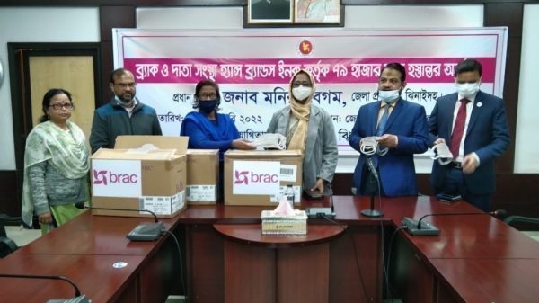 ঝিনাইদহ প্রতিনিধি ॥ ঝিনাইদহে জেলা প্রশাসকের নিকট ব্রাকের পক্ষ থেকে মাস্ক হস্তান্তর করা হয়েছে। বুধবার সকালে জেলা প্রশাসকের সম্মেলন কক্ষে জেলা প্রশাসক মনিরা বেগমের কাছে ৭৯ হাজার মাস্ক হস্তান্তর করেন