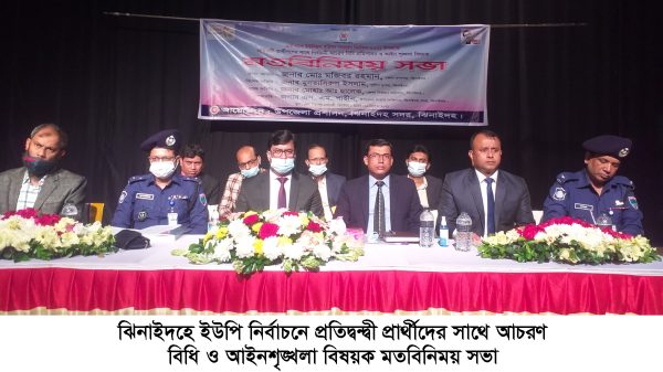 ঝিনাইদহ প্রতিনিধি ॥ ঝিনাইদহে ৪র্থ ধাপের ইউপি নির্বাচনে সদর উপজেলার ১৫ টি ইউপির প্রতিদ্বন্দ্বী প্রার্থীদের আচরণ বিধি প্রতিপালন ও ও আইনশৃঙ্খলা বিষয়ক মতবিনিময় সভা অনুষ্ঠিত হয়েছে। সদর উপজেলা প্রশাসনের