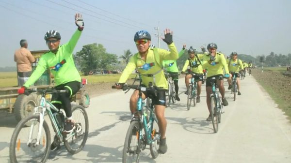 মেহেরপুর প্রতিনিধি ॥ মহান স্বাধীনতার সুবর্ণ জয়ন্তী উপলক্ষে বাংলাদেশ-ভারত সেনাবাহিনীর যৌথ বাইসাইকেল র্যালীটি চুয়াডাঙ্গার উদ্দেশ্যে মেহেরপুর ত্যাগ করেছে। বৃহস্পতিবার সকাল ৯ টার দিকে সাইকেল শোভাযাত্রাটি মেহেরপুর টিটিসি প্রাঙ্গণ থেকে