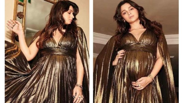 হালকা হলুদ আলোর আভা জড়ানো আলিয়া ভাট যেন মোহময়ী পরি। এছাড়া ‘মেটালিক ফিনিশ’-এর চকচকে বাদামি গাউন। পোশাকের কিছু অংশ এমন ভাবে মেলে ধরা যেন মনে হচ্ছে পরির ডানা। সম্প্রতি মাতৃত্বকালীন