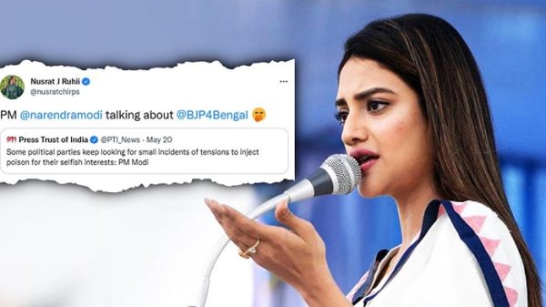 ২০২১-এর বিধানসভা ভোটের পরে আচমকা রাজনৈতিক কার্যকলাপ থেকে কিছুটা ‘দূরে’ চলে যান বসিরহাটের তৃণমূল সাংসদ নুসরাত জাহান। বর্তমানে অভিনেত্রী-সাংসদের বেশির ভাগ টুইট বিনোদন দুনিয়া সংক্রান্ত। কিন্তু শনিবার তিনি রাজনীতি সংক্রান্ত