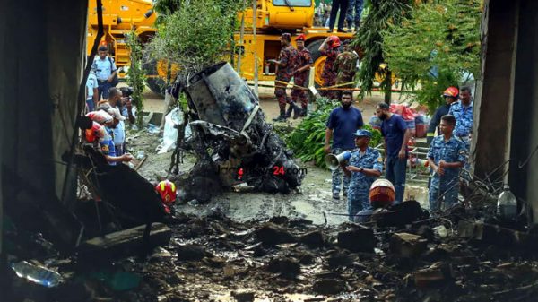 এনএনবি : ঢাকার দিয়াবাড়িতে মাইলস্টোন স্কুল অ্যান্ড কলেজের ভেতরে বিমান বাহিনীর একটি জঙ্গি বিমান বিধ্বস্ত হয়ে অন্তত ২০ জনের মৃত্যু হয়েছে; আহত ও দগ্ধ হয়েছেন দেড় শতাধিক। মৃতদের অধিকাংশই শিশু