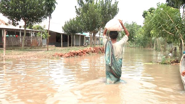 কাগজ প্রতিবেদক ॥ তখন দুপুর সাড়ে ১২টা। দৌলতপুর উপজেলার চিলমারি ইউনিয়নের চরচিলমারি বাজার। করগেট টিন দিয়ে নির্মিত প্রায় শতাধিক দোকানের বাজার। বুক সমান পানি পুরো বাজার জুড়ে। গায়ের কাপড় ভেজা
