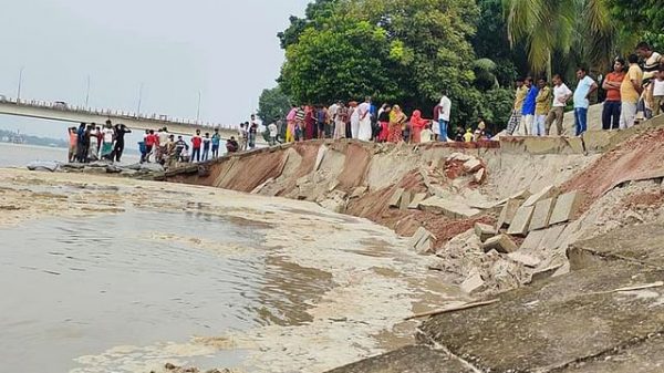 কাগজ প্রতিবেদক ॥ কুষ্টিয়া সদর উপজেলায় শেখ রাসেল কুষ্টিয়া-হরিপুর সংযোগ সেতুর রক্ষা বাঁধে আবার ভাঙন দেখা দিয়েছে। বৃহস্পতিবার সকাল পৌনে নয়টার দিকে ভাঙন শুরু হয়েছে। ঘটনাস্থল থেকে কুষ্টিয়া পানি উন্নয়ন