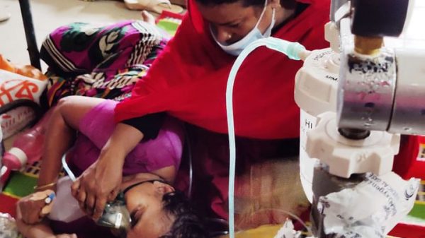 কাগজ প্রতিবেদক ॥ ছোট্ট শিশুটির নাম মুনতসির। বয়স মাত্র পাঁচ মাস। রোববার করোনা শনাক্ত হওয়ায় ভর্তি হয়েছে হাসপাতালে। কিন্তু শয্যা খালি না পাওয়ায় ওয়ার্ডে ঠাঁই হয়নি। মেঝেতে মায়ের কোলে শুয়ে