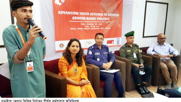 নড়াইল প্রতিনিধি ॥ নড়াইলে জেন্ডার ভিত্তিক নির্যাতন শীর্ষক কর্মশালা অনুষ্ঠিত হয়েছে। বৃহস্পতিবার দুপুরে নড়াইলের চিত্রা রিসোর্ট হলরুমে এ কর্মশালা অনুষ্ঠিত হয়। ইউএনডিপির আয়োজনে ও নড়াইল ভলান্টিয়ার্সের বাস্তবায়নে কর্মশালায় মূল আলোচক