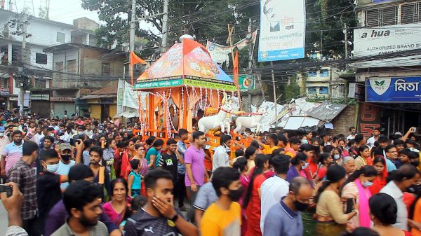 পাবনা প্রতিনিধি ॥ যথাযথ ধর্মীয় ভাবগাম্ভীর্য, ব্যাপক উৎসাহ-উদ্দীপনা আর আনন্দমুখর পরিবেশের মধ্য দিয়ে পাবনায় অনুষ্ঠিত হয়েছে হিন্দু ধর্মাবলম্বীদের অন্যতম ধর্মীয় উৎসব ‘রথযাত্রা’। শুক্রবার বিকেলে পাবনার কেন্দ্রীয় মন্দির শ্রী শ্রী জয়কালী